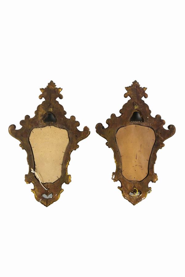 Coppia di piccole Specchiere di linea Luigi XV in legno dorato