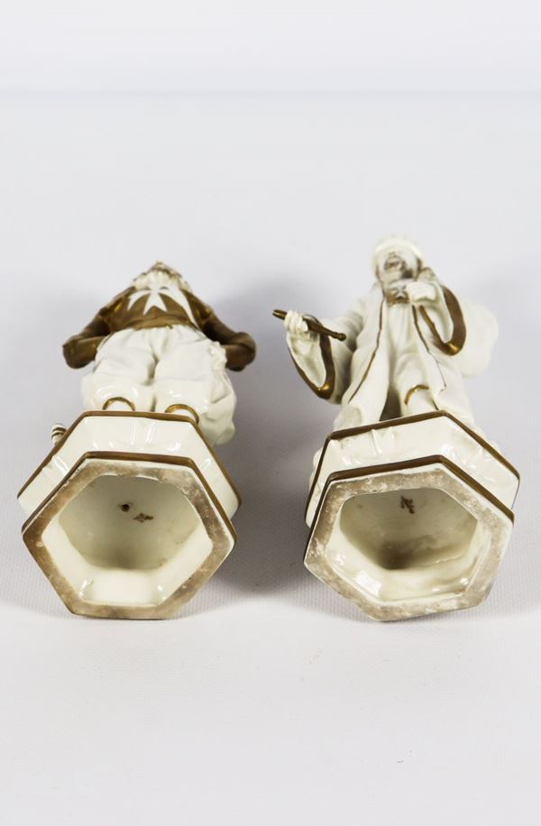 Coppia di Statuine in porcellana bianca e oro "Cavaliere e notabile"