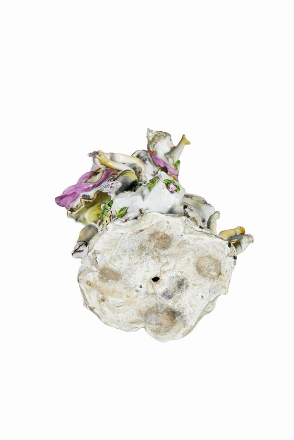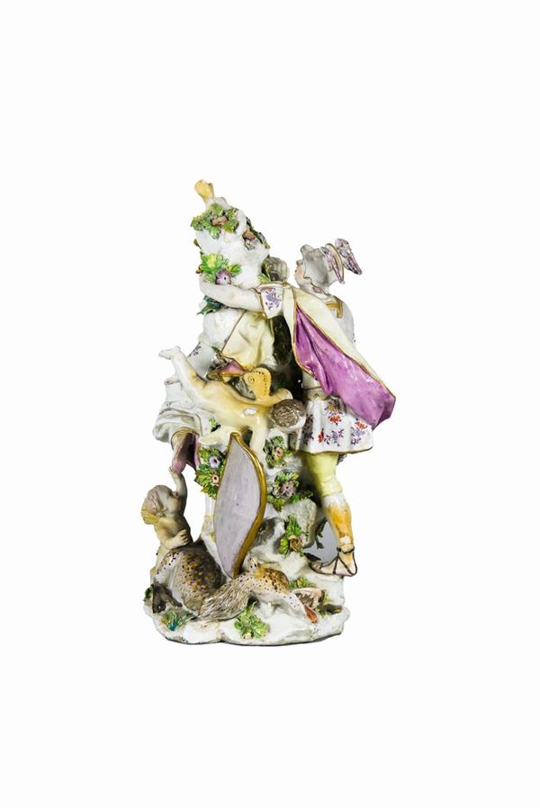 Gruppo in porcellana inglese policroma di Chelsea, "Allegoria mitologica"
