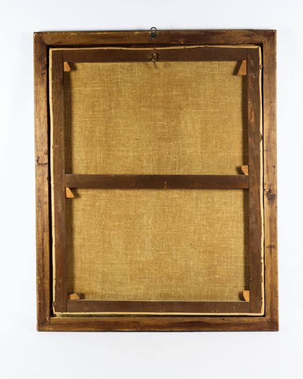 dipinto ad olio su tela di pregevole esecuzione pittorica, cornice in legno dorato. Misura cm. 90 x 70.
