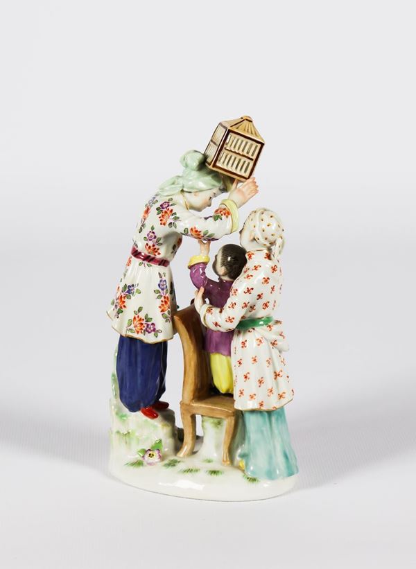 Piccolo Gruppo in porcellana policroma smaltata Meissen "Cinesina con figlioletti che giocano"