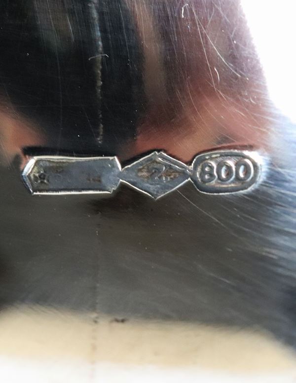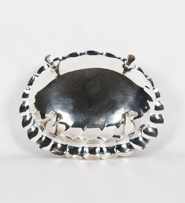 sbalzato a motivi di torchon e sorretto da quattro piedini ricurvi. Misura cm. 24 x 20.