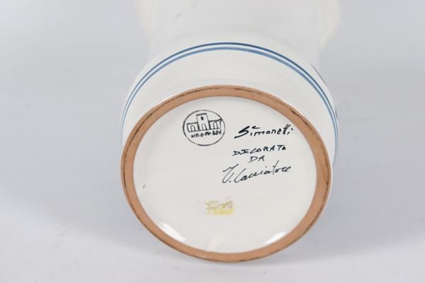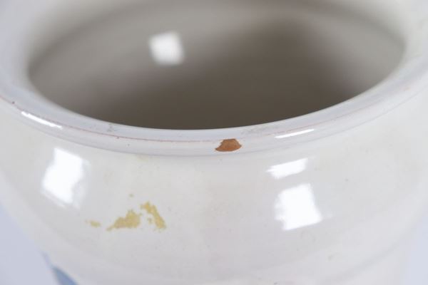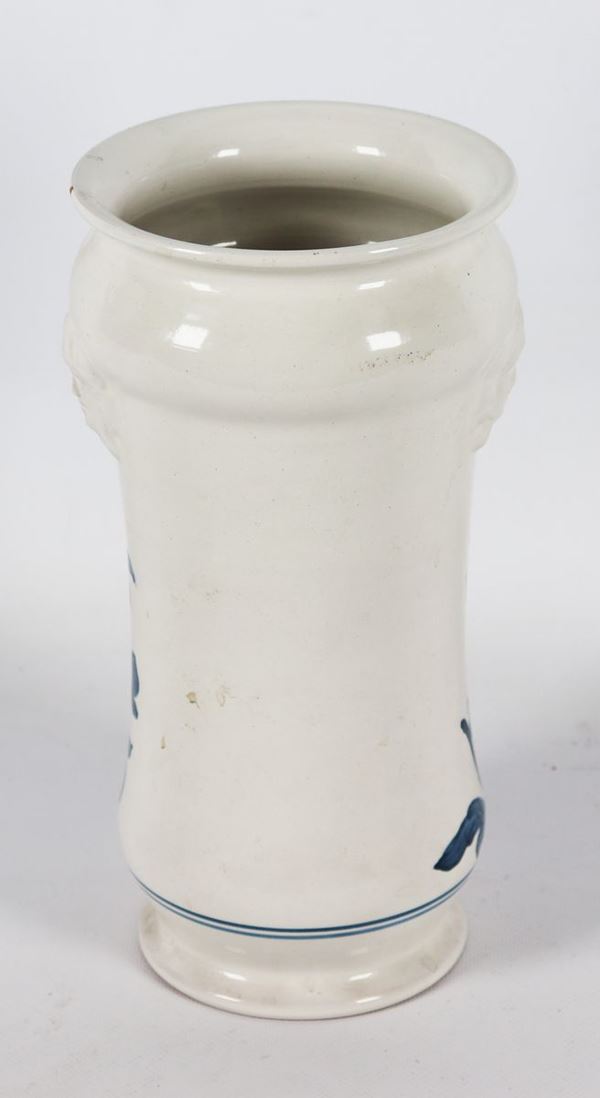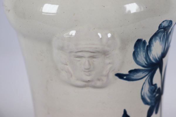 con decorazioni di fiori blu su fondo bianco. Difetti e mancanze, diametro cm 14 x 27,5 h.
