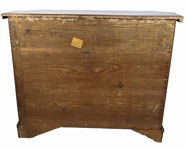 con filettature intarsiate in bosso a motivi geometrici, due tiretti e due sportelli sottostanti, cm 116 x 30 x 95 h.