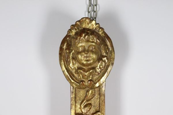 intagliato a motivi di teste di angioletti e cordoni floreali. Cm 70 x 140 h.
