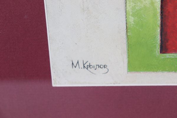 "Volto di donna astratto". Firmato, dipinto a tecnica mista su carta