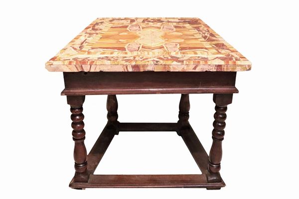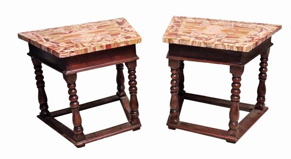 Coppia di antiche consolles bolognesi in noce con piani in marmo di alabastro di Palombara