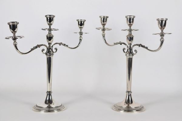 Coppia di candelabri a tre fiamme in argento gr 1150