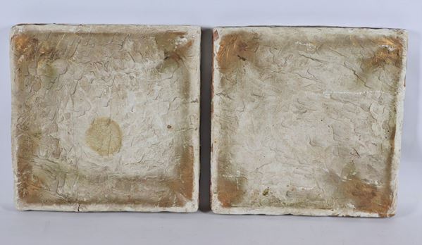 interamente decorate e dipinte a varie policromie. Una mattonella presenta vecchio restauro, cm 41,5 x 41,5.