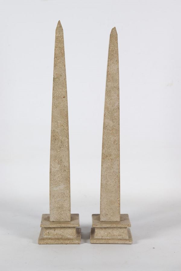 le punte degli obelischi presentano qualche mancanza, altezza cm 46 ciascuno.