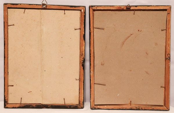 cornici in legno laccato nero e vetro, cm 25 x 18,5 ciascuna.