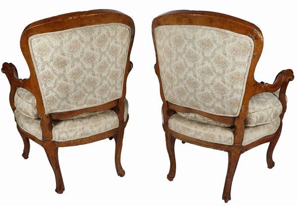 Coppia di poltrone veneziane Luigi XV in noce decapè