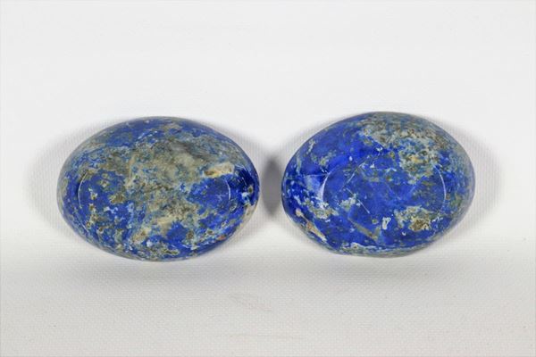 Coppia di saliere ovali in pietra dura di lapislazzulo