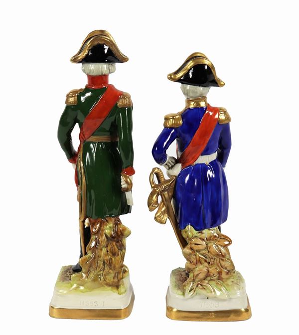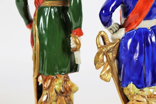 Coppia di statuine "Ufficiali" in porcellana policroma Capodimonte