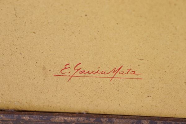 su cartone applicato a masonite, cornice in legno dorato, cm 120 x 78,5.