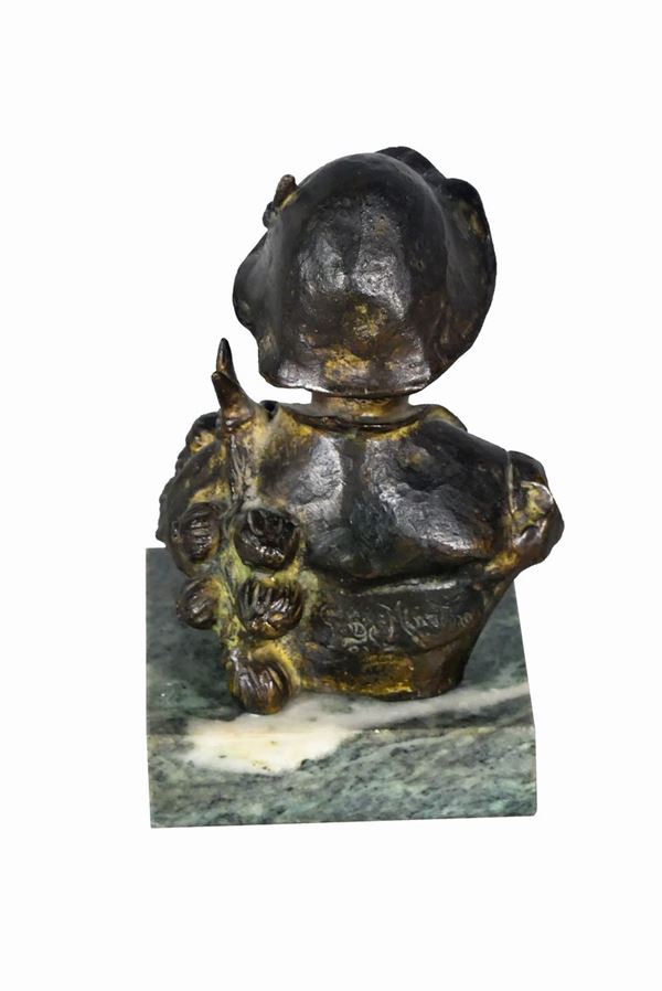 Piccolo busto napoletano in bronzo "Scugnizzo". Firmato