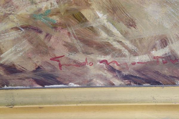 opera dell'artista lombardo che fu precocissimo ed ebbe a maestro Angelo Dall'Oca Bianca. Fu noto e pregevole ritrattista (ritratti di Pietro Mascagni, Conte Caproni, Maria Pia di Savoia e Konrad Adenauer) e nel 1964 conseguì la medaglia d'oro al Premio Internazionale G. D'Annunzio, cornice in legno dorato, cm 59,5 x 99,5.