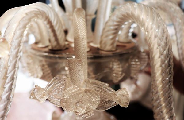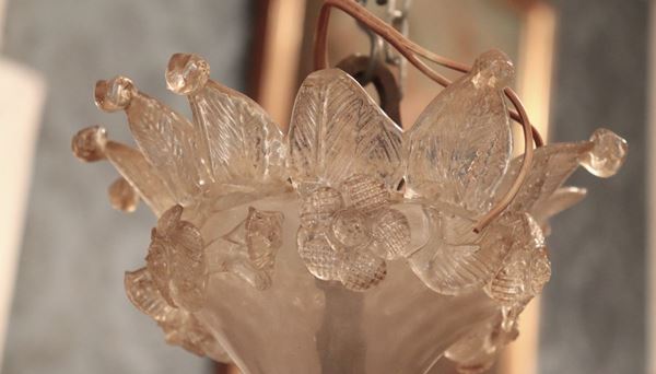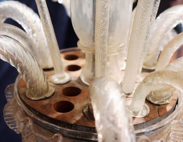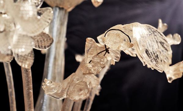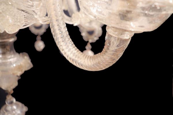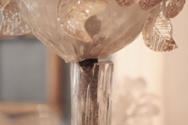 Lampadario in vetro soffiato di Murano trasparente