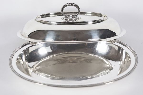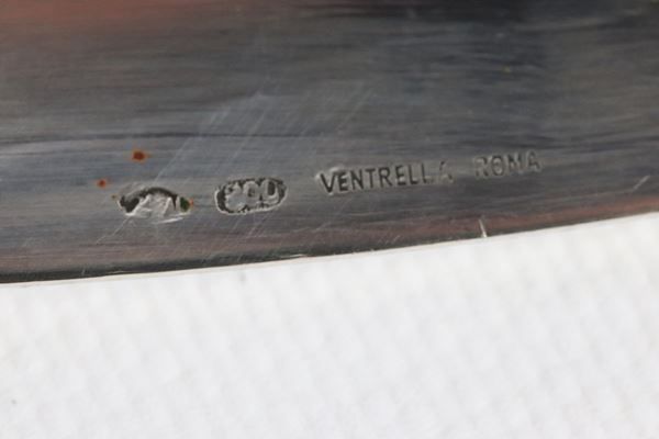 con manico e bordo baccellati, cm 34 x 24,5 x 14 h.