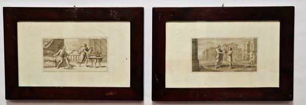 Lotto di dieci antiche piccole incisioni "Scene storico - bibliche"