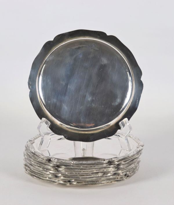 Lotto di dodici piattini per pane in argento titolo 900 gr 1810