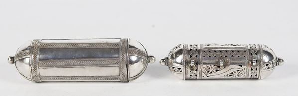 Lotto di due piccoli portapergamene orientali in argento gr 160