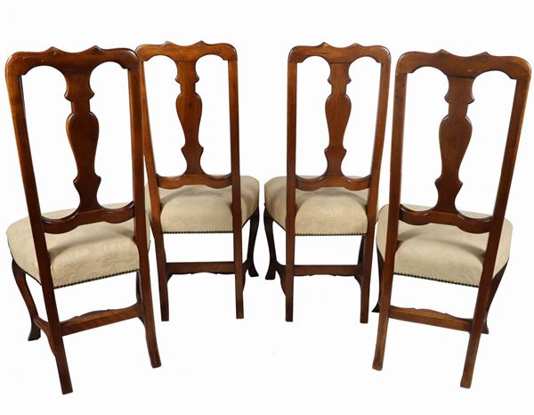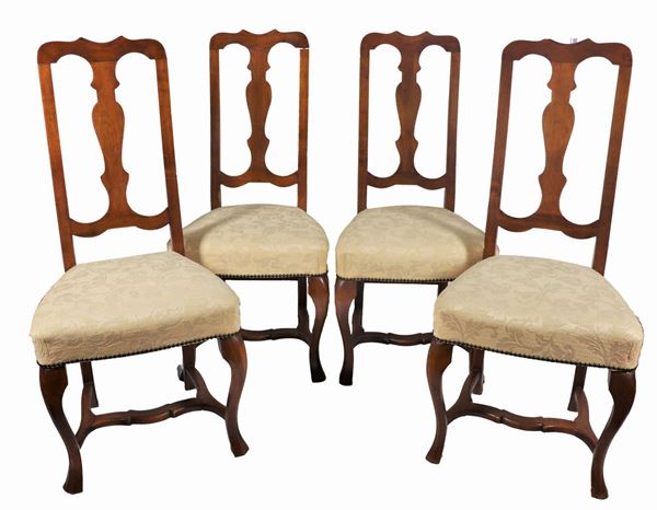 con schienali alti e gambe ricurve riunite da crociera sottostante, cm 50 x 42 x 92 h ciascuna.