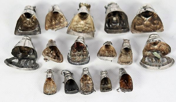 Lotto di sedici statuine di "Divinità Sudamericane" in argento gr 110