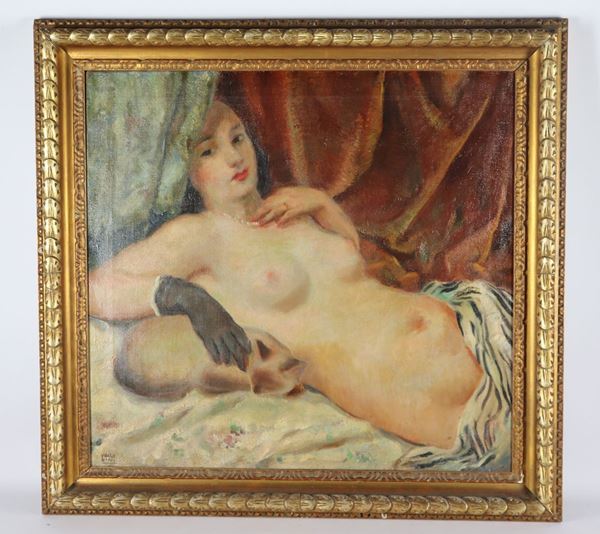 "Nudo di donna". Firmato, dipinto ad olio su tela