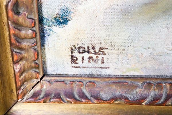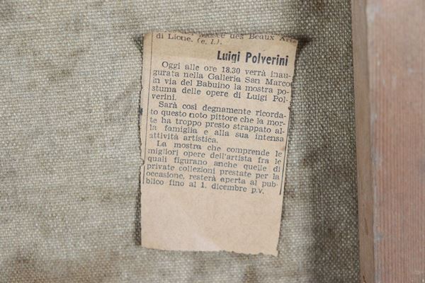 opera del Polverini che espose a Roma nel 1952 alla Galleria Giosi e nel 1954 alla Galleria La Barcaccia ottenendo un ottimo successo. Cornice in legno dorato ed intagliato, cm 71 x 75,5.