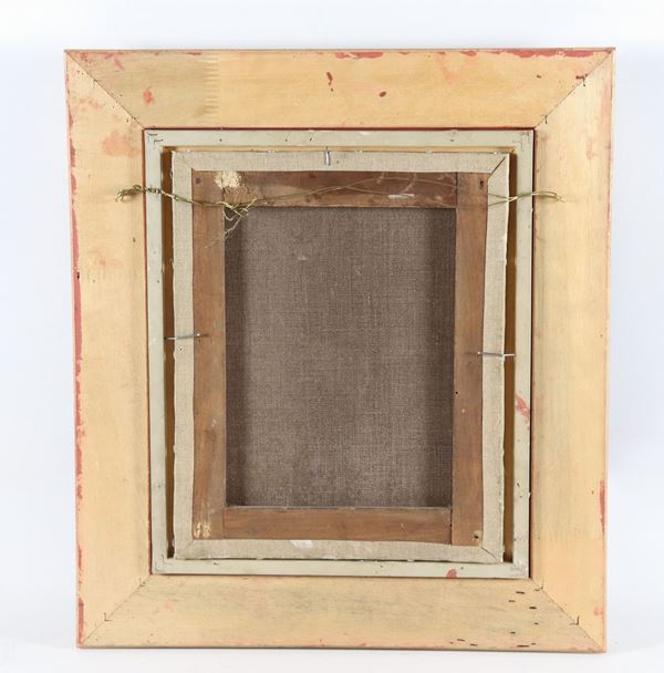 in cornice in legno dorato ed intagliato, cm 31,5 x 25.