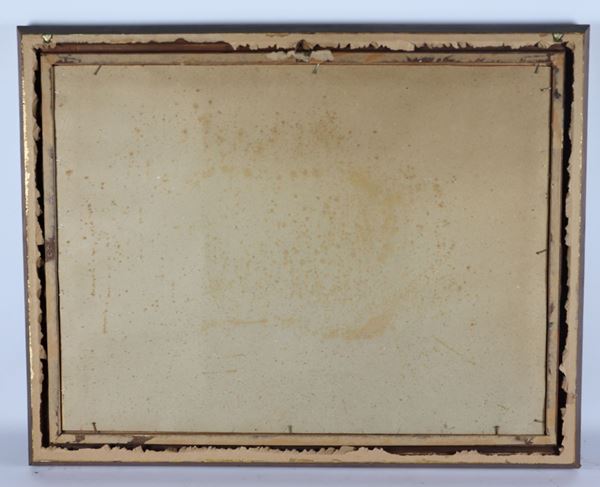 Oleografia su tela applicata a cartone "Paesaggio con personaggi"