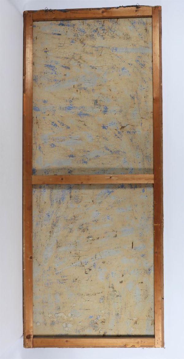 Pannello piemontese Luigi XVI dipinto ad olio su tela con applicazioni a rilievo