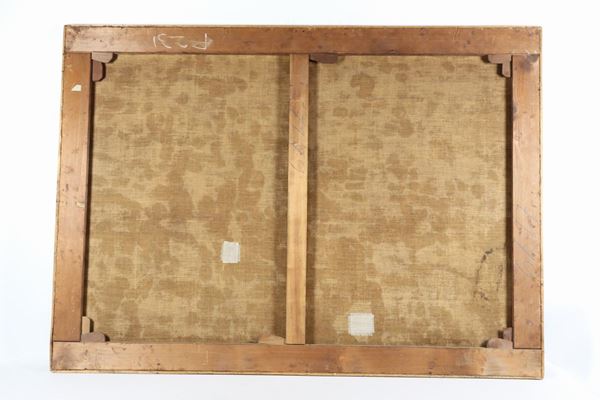 "Pastorella con gregge di pecore, caprette e ruderi romani". Att.to, dipinto ad olio su tela