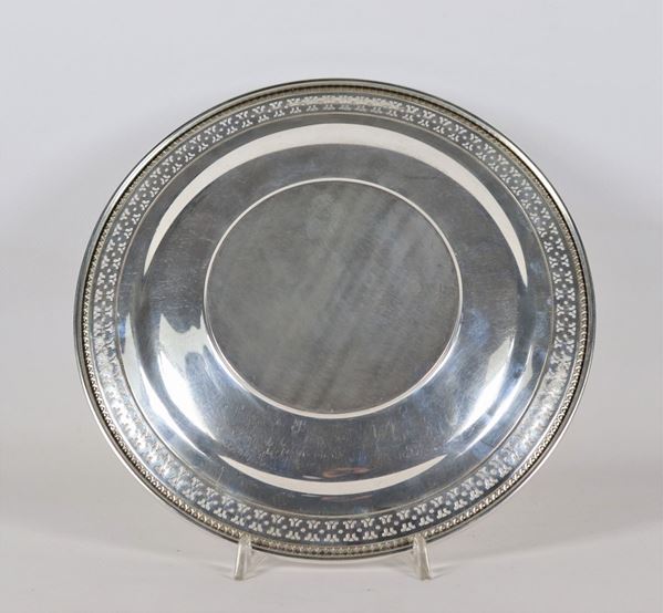 con bordo cesellato e traforato a motivi Impero, diametro cm 26,5.