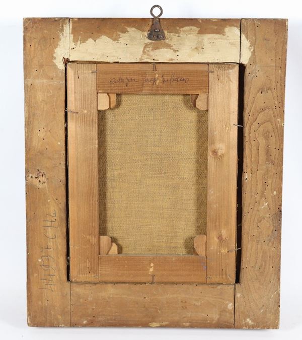 eseguito con tecnica minuziosa e delicatezza cromatica, cornice in legno dorato, cm 38 x 30.