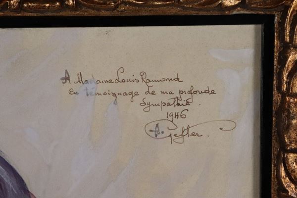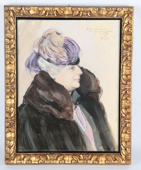 "Ritratto di madame Louis Ramond ". Firmato e datato 1946, acquarello su carta