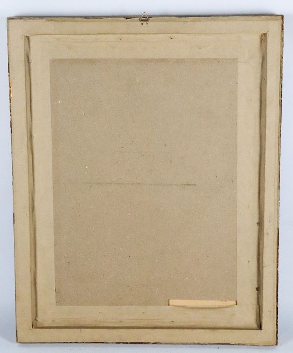 in cornice in legno dorato ed intagliato, cm 42 x 33.