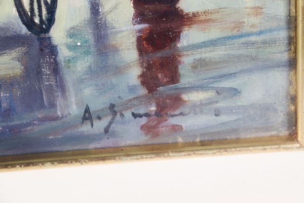 "Passeggiata in carrozza". Firmato, dipinto ad olio su tela