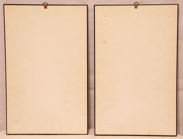 in cornici in radica di noce e vetro, cm 30 x 17 ciascuno.