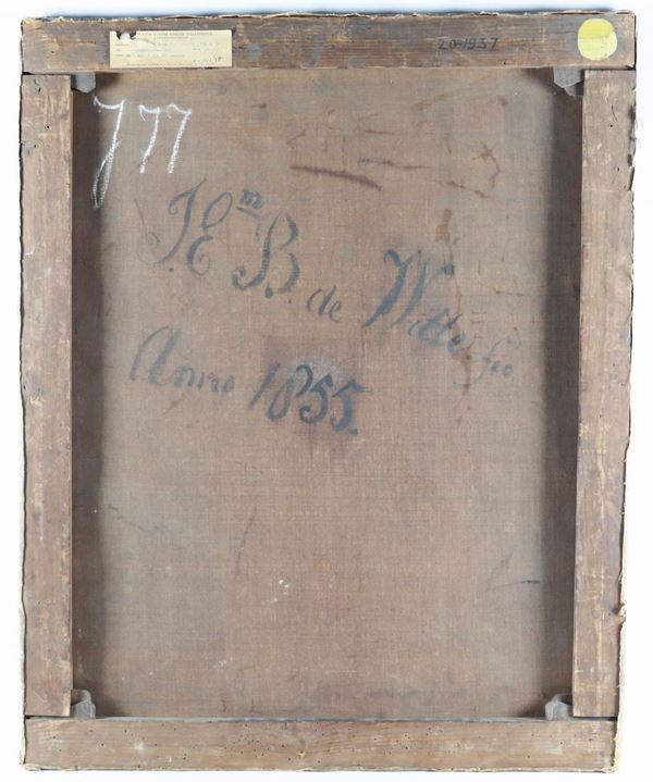 firmato e datato 1855 sul retro della tela, cm 88 x 71.
