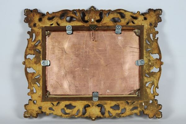 cornice in legno dorato ed intagliato. Lievi mancanze ai quattro angoli, cm 22 x 15,5 h.