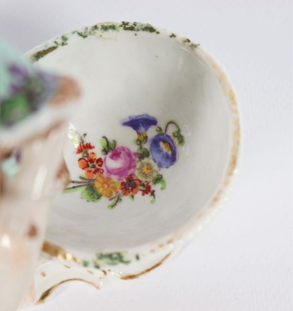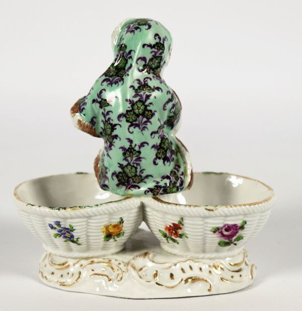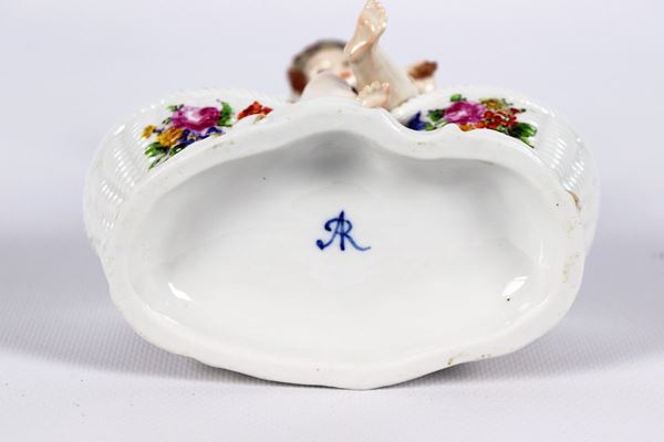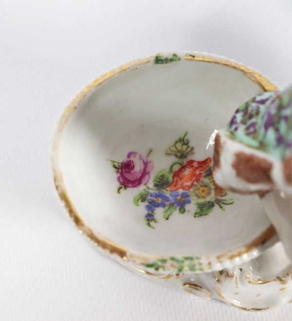 Saliera con "Putto e cesti" in porcellana policroma Meissen Augustus Rex