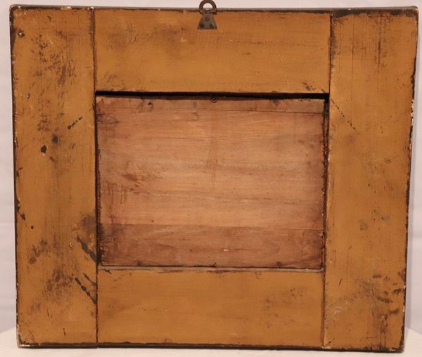 "Paesaggio con contadini e stalla" piccolo dipinto ad olio su tavoletta