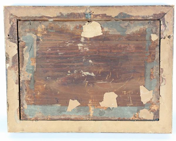 eseguito con tecnica minuziosa e delicata. Cornice in legno dorato, cm 24 x 34, con la cornice cm 33 x 43.