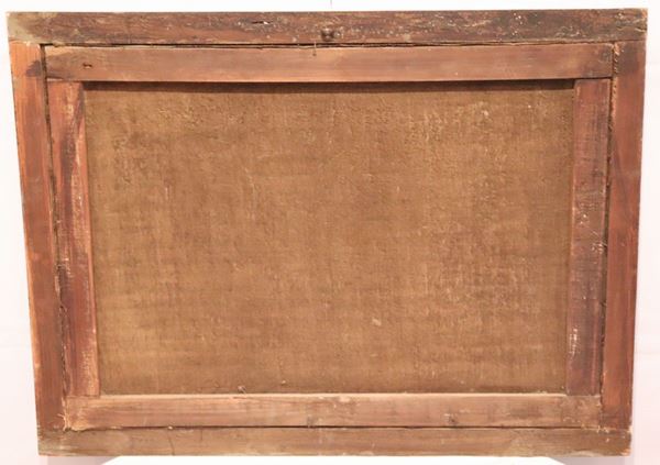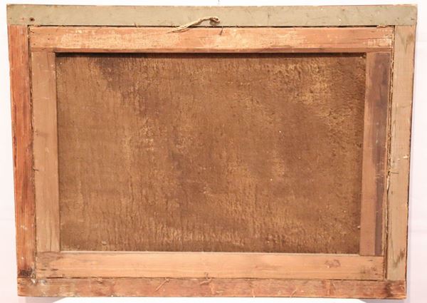 in cornici laccate verdi e dorate. Le tele e le cornici presentano difetti, cm 50 x 70 ciascuno.
