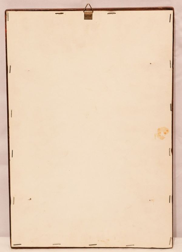 "Pergolato con tralci e grappoli d'uva" piccolo dipinto ad olio su tavoletta