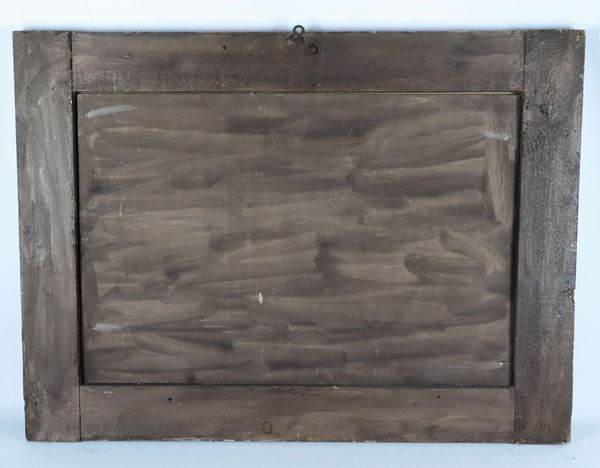 in cornice dorata e laccata rossa, cm 51 x 75,5.