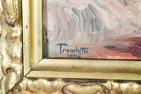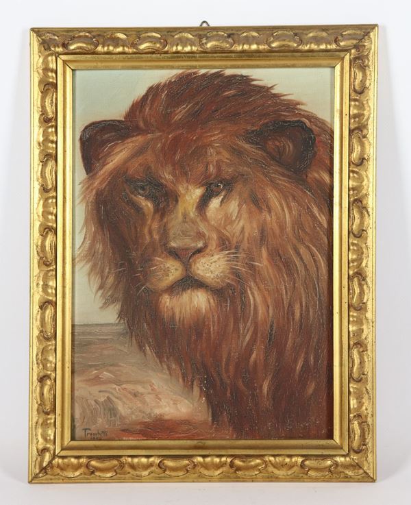 "Testa di leone". Firmato Trombetti 1908, piccolo dipinto ad olio