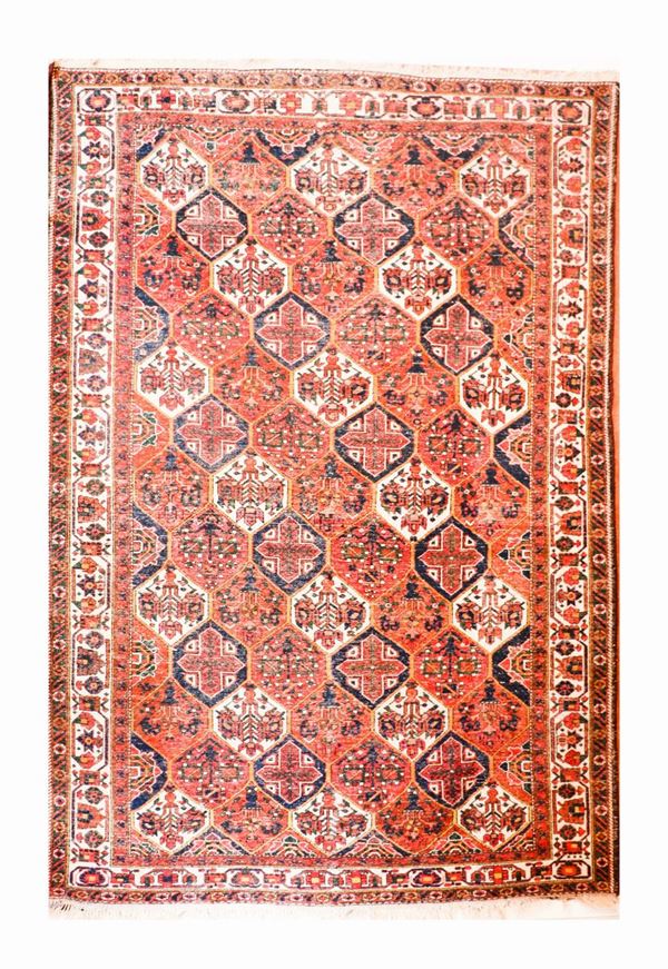 Tappeto Persiano a disegni geometrici su fondo rosso